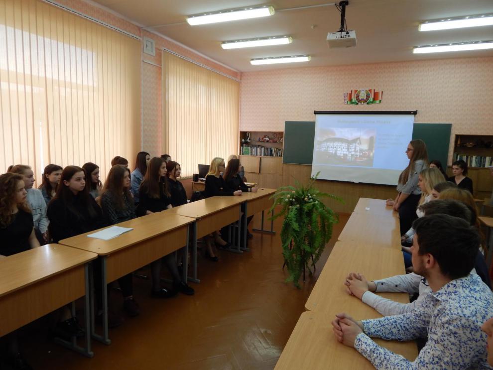 В ходе мероприятия учащиеся, разделившиеся на две команды, отвечали на вопросы о географии нашей страны, ее славных людях, об исторических событиях Беларуси. Команды приняли участие в конкурсах “Самые-самые”, “Мудрые советчики”, “Вкусный тур”, “Верю-не верю”, “Литература и музыка”, “Славные имена Беларуси”, “А знаете ли вы?”, “Гостиница”.