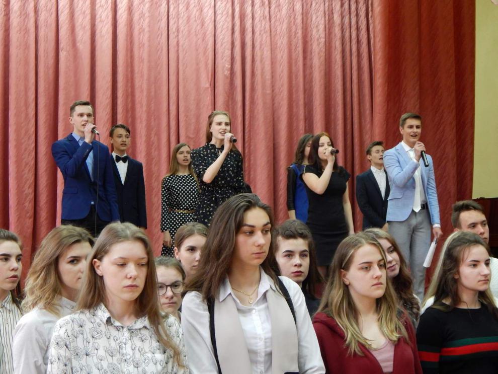 Преподаватель Карташова Т.А. и учащиеся группы УП-1 провели акцию “Споем песни Победы вместе”. Вокальная группа колледжа и все присутствующие в зале с удовольствием пели знакомые песни военных лет “Катюша”, “Смуглянка”, “В землянке”, “Синий платочек”, “Огонёк”. Закончилось мероприятие исполнением песни “День Победы”.