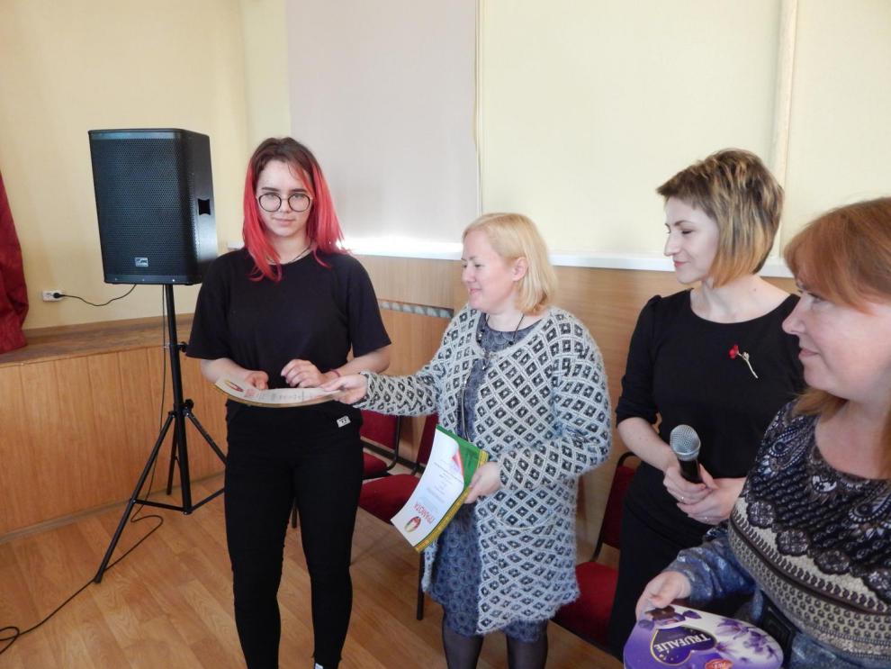 Победителем конкурса стала учащаяся группы БДп-1 Русакевич Настя, занявшая 1 место. 2 место завоевала Сиденко Елизавета (группа УП-1), 3 место - Анушкевич Ангелина (группа БД-1). Приз зрительских симпатий преподавателей получила Сороко Дарья (УПп-21). Победители были награждены грамотами и получили сладкие призы.