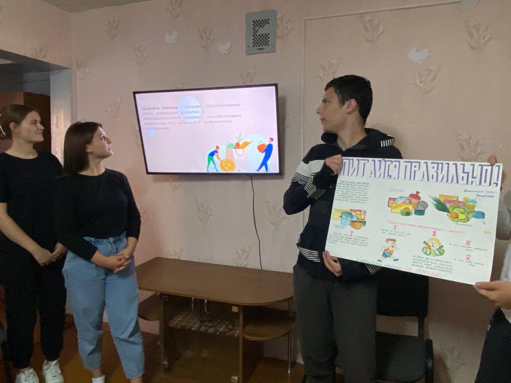 В общежитии №1 воспитатели Светлана Николаевна Ковальчук и Наталья Геннадьевна Груганова провели час здоровья «Будьте здоровы!».