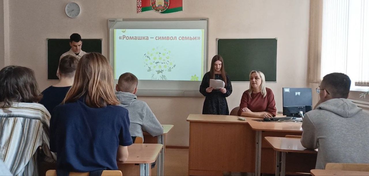 В рамках республиканского конкурса социальных молодежных проектов «Молодежь Беларуси за жизнь, нравственность и семейные ценности» 14 марта 2024 года в группе ПО-1 (куратор Сергеенко М.А.) состоялся час общения на тему «Важность семейных ценностей и традиций». Проектная группа совместно с учащимися обсудила важность сохранения семейных ценностей и традиций: поддержания атмосферы любви, уважения и взаимопомощи в семье.